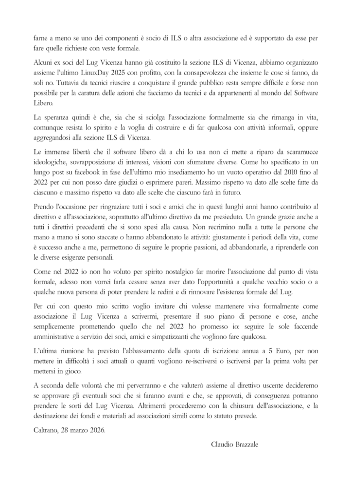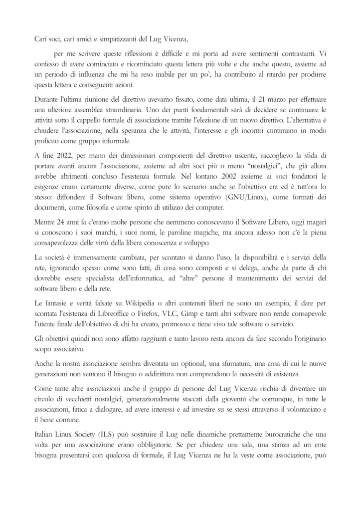 Le attività del LUGVI non si fermano, il gruppo rimane in qualsiasi caso, o ancora come associazione o come semplice gruppo informale.